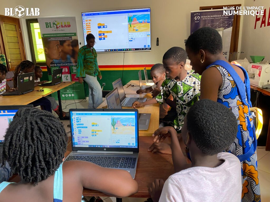 Dans le cadre du Mois de l’Impact Numérique, BLOLAB a accueilli le 3 décembre 2025, sur son site de Cotonou, un groupe d’enfants âgés de 7 à 12 ans pour un atelier d’initiation à la programmation.