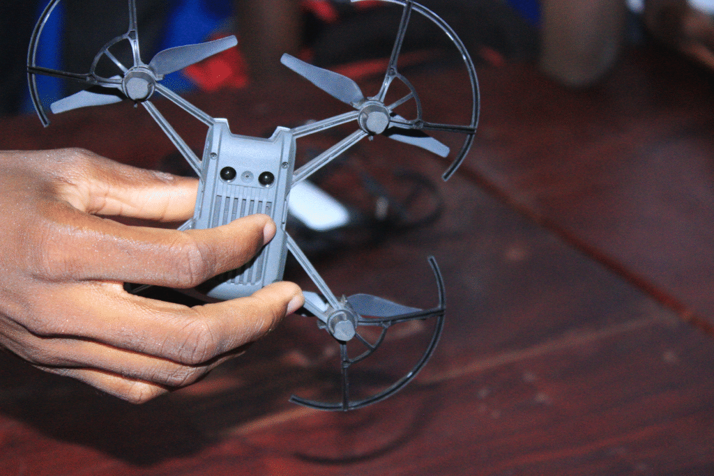 Les jeunes ont également expérimenté la robotique aérienne grâce au drone Tello EDU. Deux étapes ont marqué cette séquence :